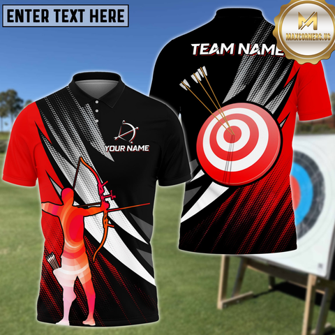 Maxcorners Premium Archery Team Jersey Personalized Name, Team Name 3D Polo Shirt - Red