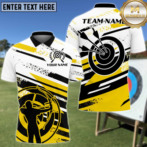 Maxcorners Archery Crown Golden Multicolor Option Customized Name, Team Name 3D Polo Shirt - Yellow