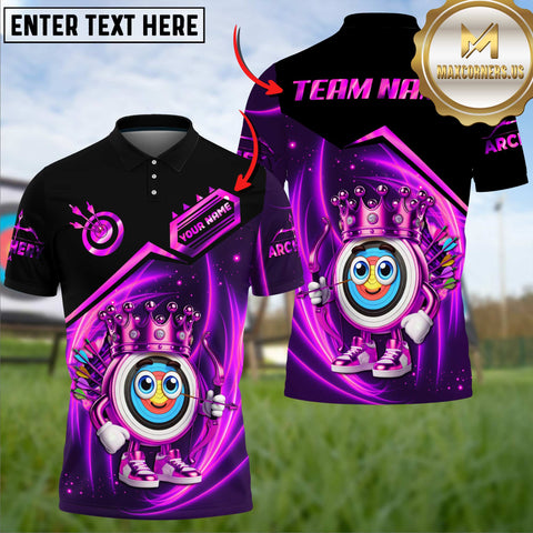 Maxcorners Archery Funny Crown Golden Multicolor Option Customized Name, Team Name 3D Polo Shirt - Red