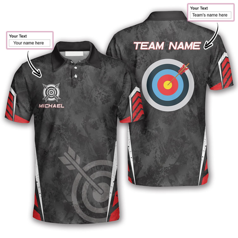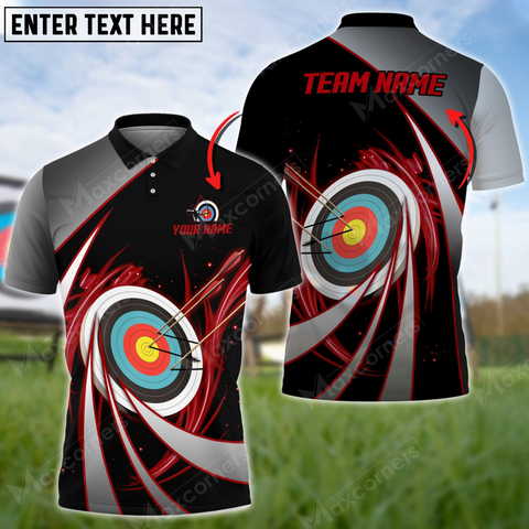 Maxcorners Archery Classic Multicolor Option Personalized Name, Team Name 3D Polo Shirt - Red