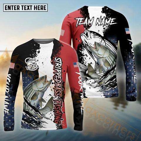 Maxcorners Stripped Bass Fishing Paint Scratch American Flag scratch Sport Custom Name & Team Name 3D Shirts
