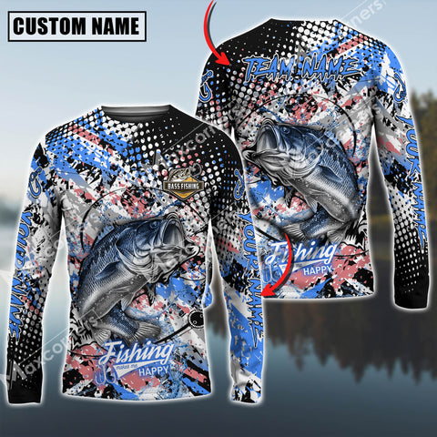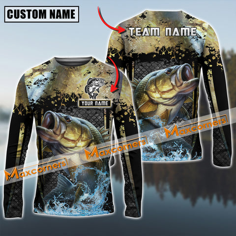 Maxcorners Bass Fishing Technology Pattern Personalized Name, Team Name Long Sleeve Shirt