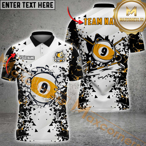 Maxcorners Billiard 9-Ball Pool Shut Up and Shoot Multicolor Customized Name, Team Name 3D Shirt - Yellow