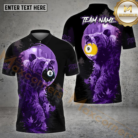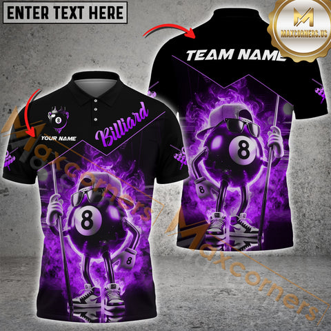Maxcorners Billiards Shirt Smoke Wolf 8 Ball Mystic Flame Multioptions Personalized Name, Team Name Unisex 3D Shirt - Purple