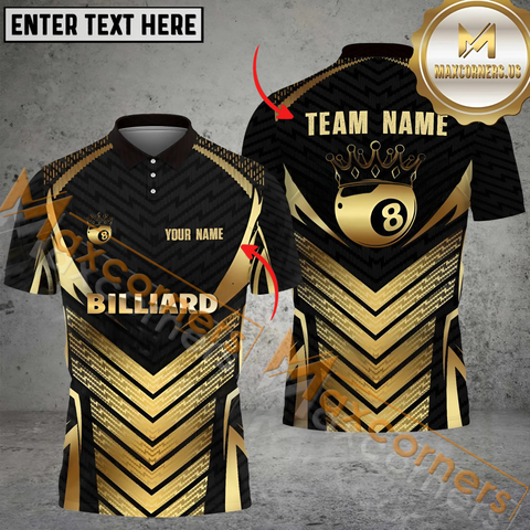 Maxcorners Billiards Shirt Royal Crown Gold 8 Ball Multioptions Personalized Name, Team Name Unisex 3D Shirt - Gold