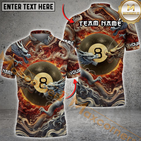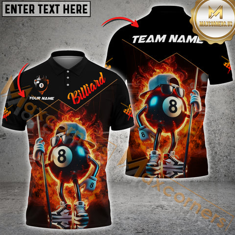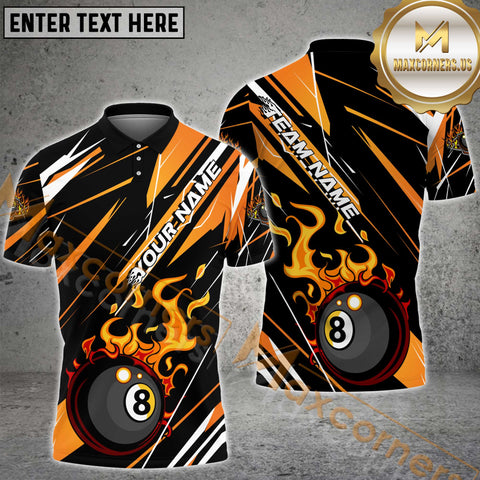 Maxcorners Billiard Ball 8 Funny Multicolor Options Personalized Name, Team Name 3D Polo Shirt (4 Colors) - Orange