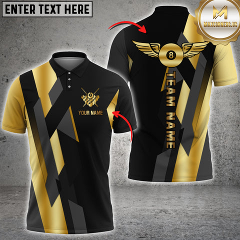 Maxcorners Billiard Shirt Golden Flame 8 Ball Design Premium Multioptions Personalized Name, Team Name Unisex 3D Shirt - Gold
