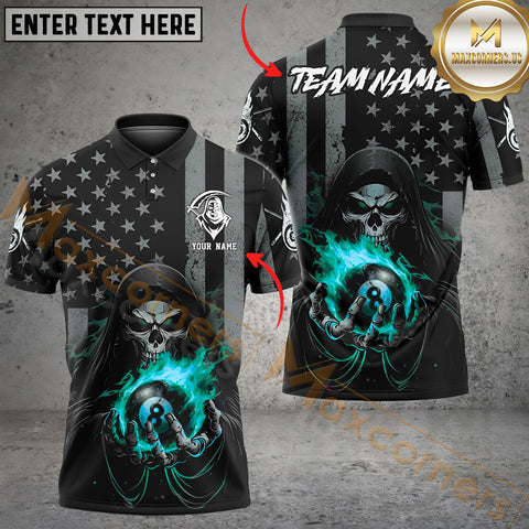 Maxcorners Billiard Shirt Grim Reaper Cosmic 8 Ball Multioptions Personalized Name, Team Name Unisex 3D Shirt (4 Colors) - Blue