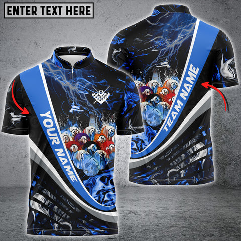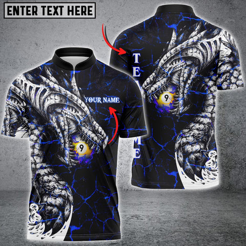 Maxcorners Billiards Ball 8 Colourful Personalized 3D Zipper Polo Shirt - Blue