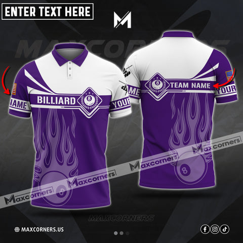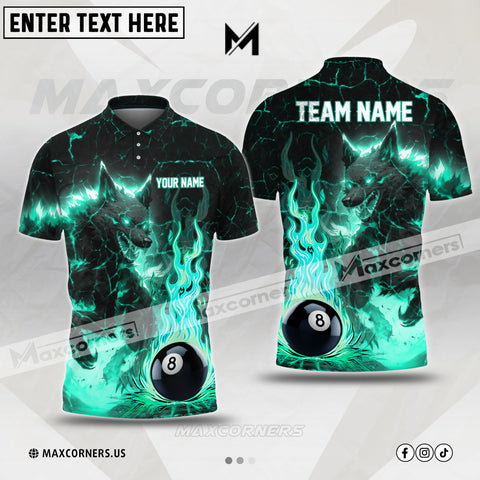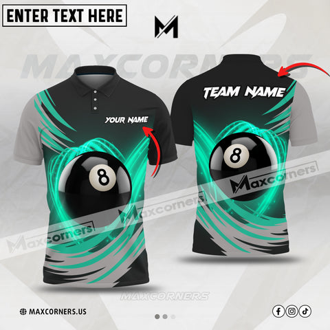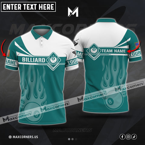 Maxcorners Billiard 8 Ball Flame Multicolor Option Personalized Name 3D Polo (4 Colors) - Cyan