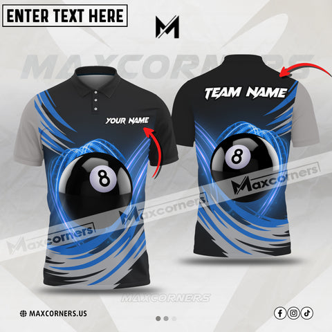 Maxcorners Billiards Ball 8 Tsunami Multicolor Option Personalized Name 3D Polo - Blue