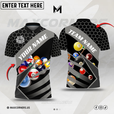Maxcorners Billiards Sport 3x Personalized Name, Team Name Unisex Zipper Polo ( More Color Options ) - Gray