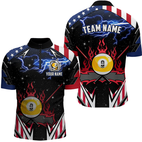 Maxcorners Billiard 9 Ball Skull American Flag Multicolor Options Personalized Name, Team Name 3D Shirt (4 Colors) - 9 Balll