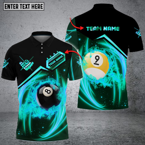 Maxcorners Billiards Ball 9 Metal And Fire Flame Multicolor Option Personalized Name 3D Polo Shirt (4 Colors) - Cyan