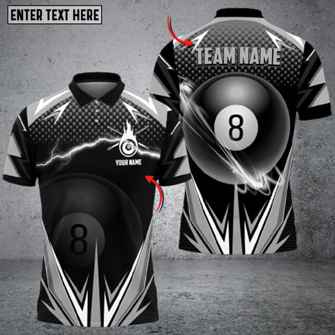 Maxcorners Billiard Ball 8 Skull USA Flag Multicolor Options Personalized Name, Team Name 3D Polo Shirt - Black