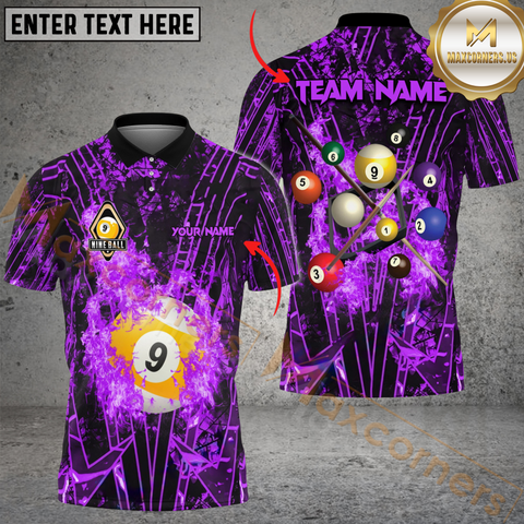 Maxcorners Billiard Ball 8 Flame Versus Kong Multicolor Options Personalized Name, Team Name 3D Polo Shirt - Purple