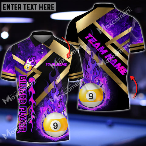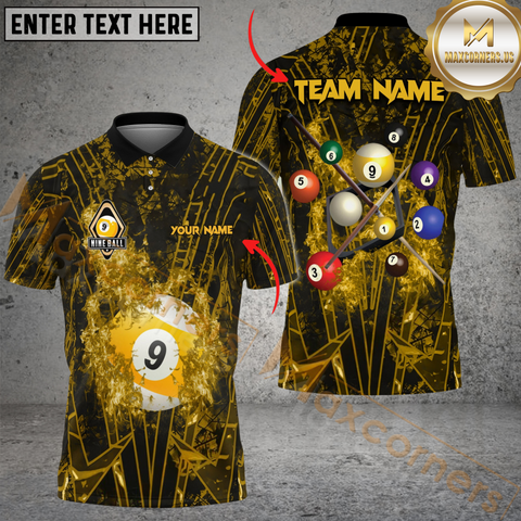 Maxcorners Ball 9 Player Yellow Billiard Jersey Customized Name, Team Name 3D Polo Shirt