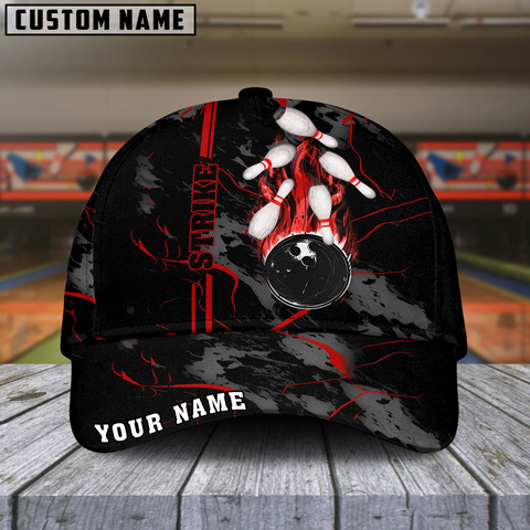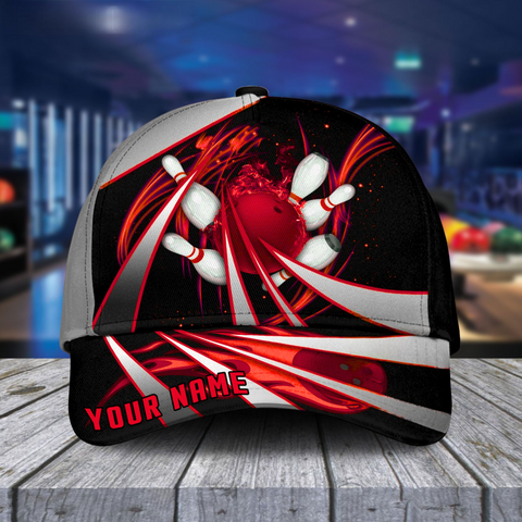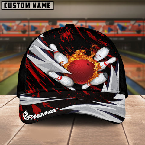 Maxcorners Flaming Strike Bowling Multicolor Personalized Name 3D Cap - Red