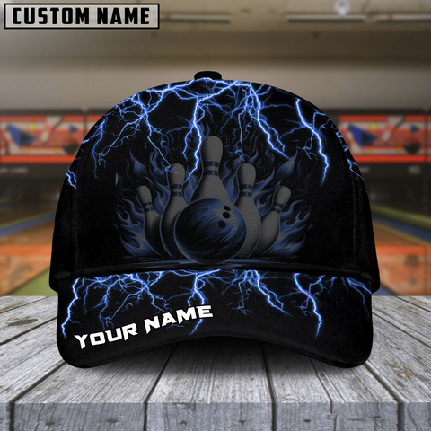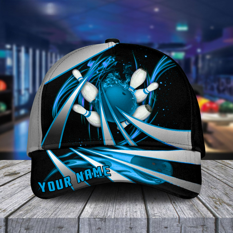 Maxcorners Bowling Neon Ball Champion Multicolor Personalized Name 3D Cap - Blue