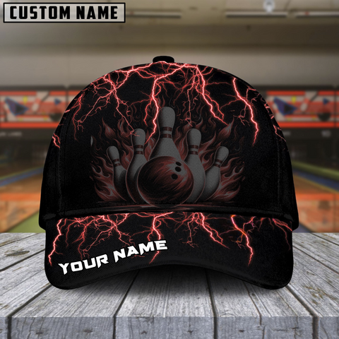 Maxcorners Bowling Thunder Storm Multicolor Personalized Name 3D Cap - Red