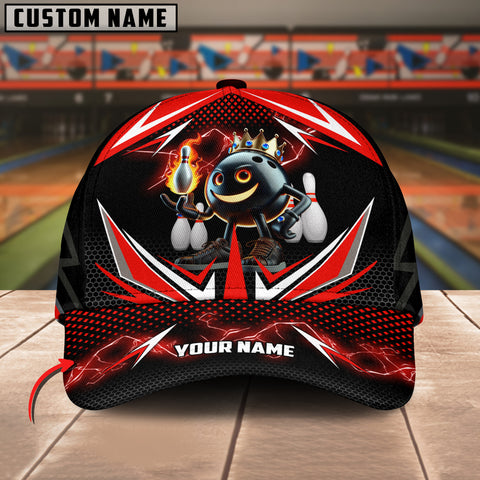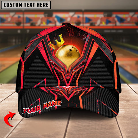 Maxcorners Bowling Ball & Pins King Crown Jersey Sport Multicolor Personalized Name 3D Cap - Red