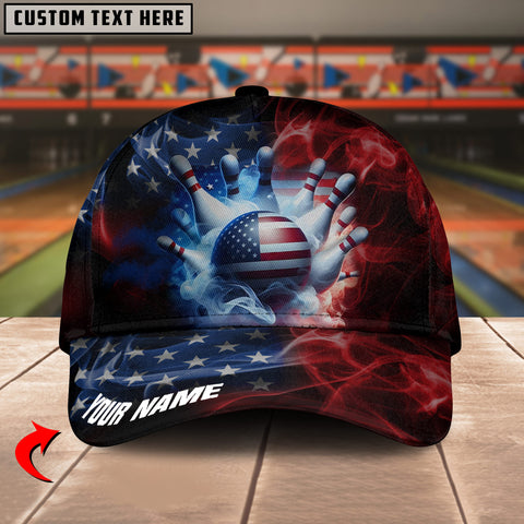 Maxcorners Bowling American Flag Smoke Personalized Name 3D Cap