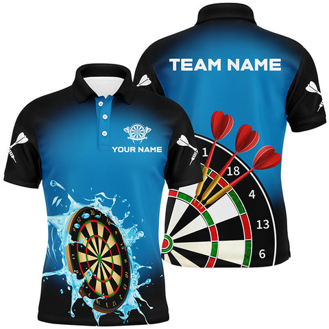 Personalized Blue Black 3D Mens Darts Polo Shirts