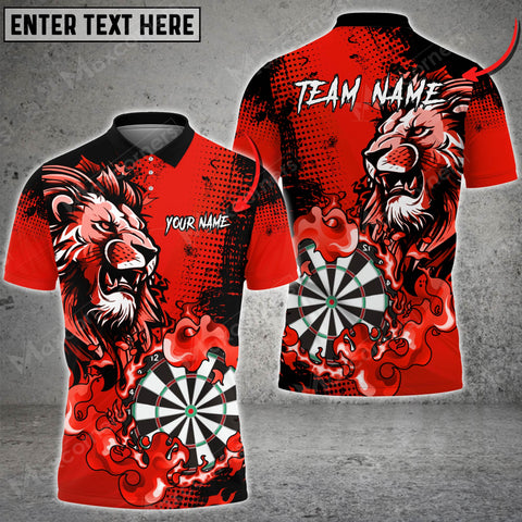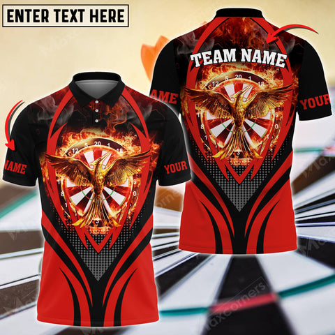 Maxcorners Darts Phoenix Flame Customized Name, Team Name 3D Polo Shirt - Red