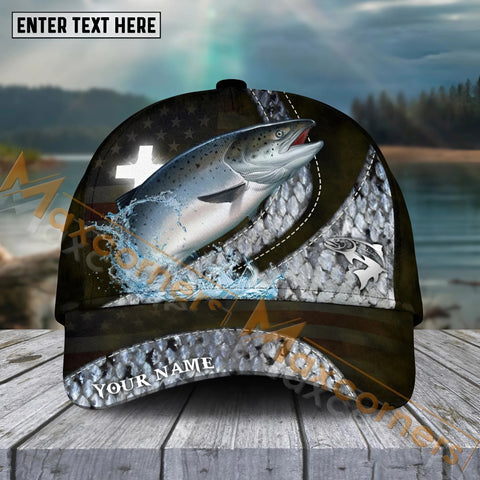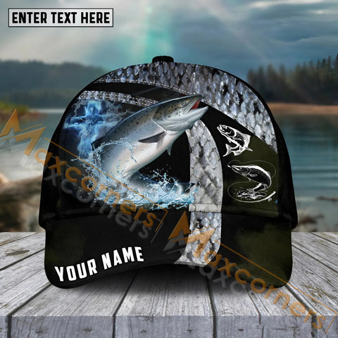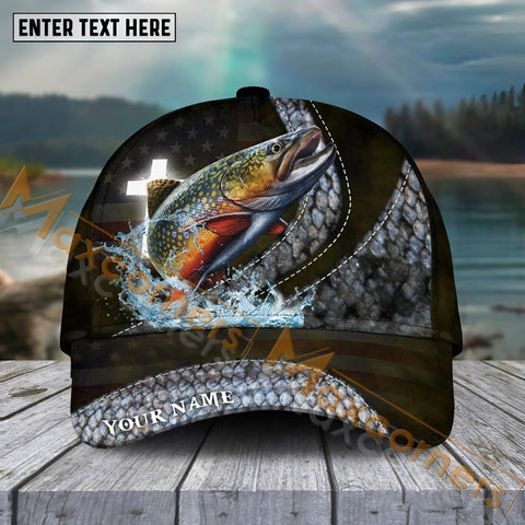 Maxcorners Trout Fishing Black White Gold Premium Pattern Sport Pattern Personalized Name 3D Cap MT78