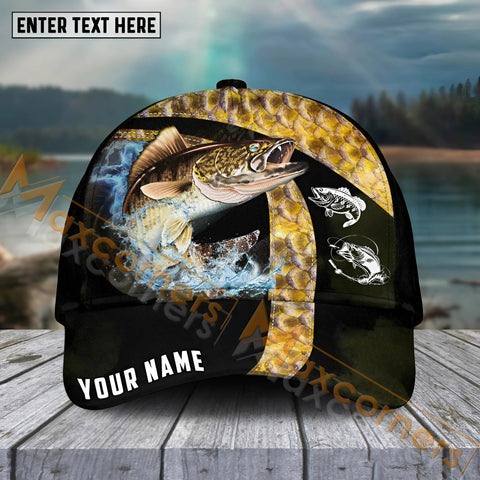 Maxcorners Walleye Fishing Gold Premium Skinfish Pattern Sport Pattern Personalized Name 3D Cap MT78