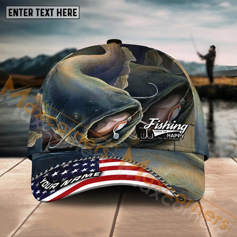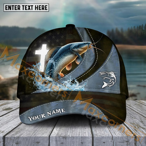 Maxcorners American Flag Fishing Sunrise Farm Scene Camo Custom Name 3D Cap (12 Breeds)