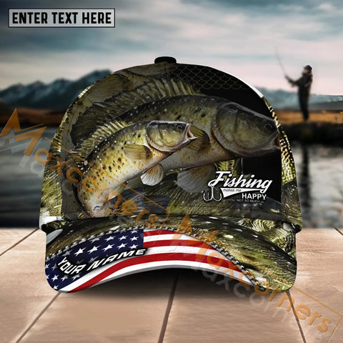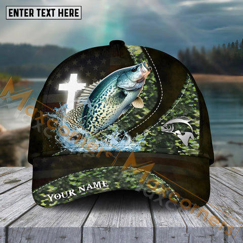 Maxcorners Crappie Fishing Black White Gold Premium Pattern Sport Pattern Personalized Name 3D Cap MT78