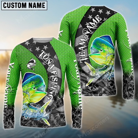 Maxcorners Mahi-Mahi Fishing American Green Star Sun Protection Personalized Name, Team Name Long Sleeve Shirt