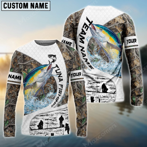 Maxcorners Tuna Fishing Camo Fisher Sun Protection Personalized Name, Team Name Long Sleeve Shirt