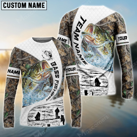 Maxcorners Bass Fishing Camo Fisher Sun Protection Personalized Name, Team Name Long Sleeve Shirt
