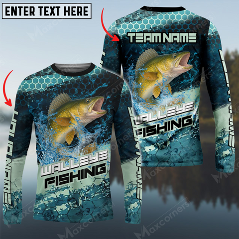 Maxcorners Walleye Fishing Aqua Strikephy Sun Protection Personalized Name, Team Name Long Sleeve Shirt