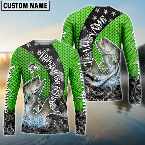 Maxcorners Striped Bass Fishing American Green Star Sun Protection Personalized Name, Team Name Long Sleeve Shirt