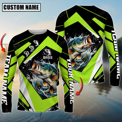 Maxcorner Bass Fishing Jersey Green Line Pattern Personalized 3D Long Sleeve Shirt