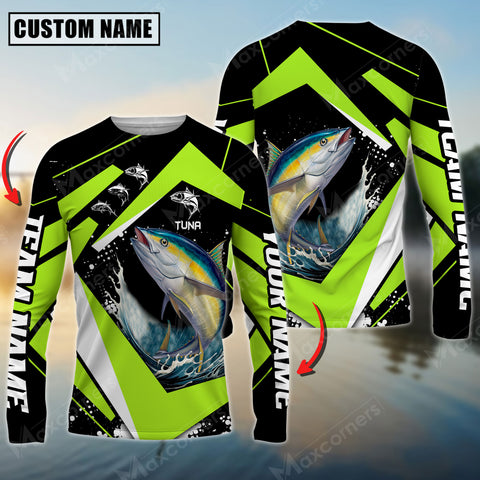 Maxcorner Tuna Fishing Jersey Green Line Pattern Personalized 3D Long Sleeve Shirt