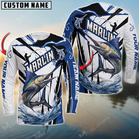 Maxcorner Marlin Fishing Jersey Blue Line Pattern Personalized 3D Long Sleeve Shirt