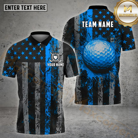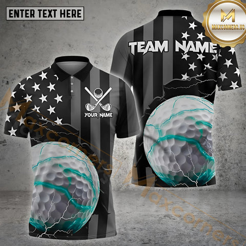 Maxcorners Patriotic Skull Golf Polo Shirt, Custom Name & Team Name Golf 3D Shirts