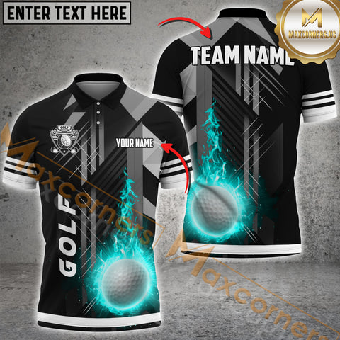 Maxcorners Flaming Shark Swing Golf Polo Shirt, Custom Name & Team Name Golf 3D Shirts