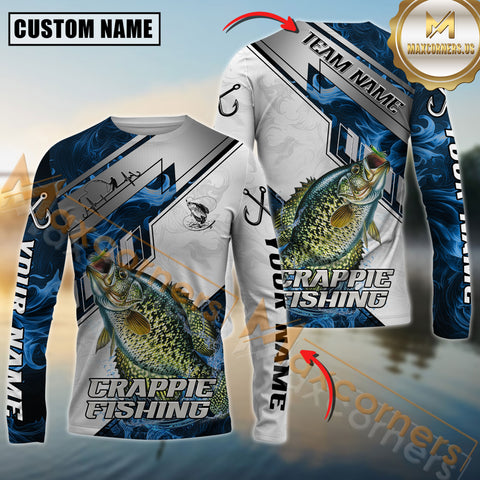 Maxcorners Crappie Fishing Compass Splash 3D Personalized Name, Team Name Long Sleeve Shirt
