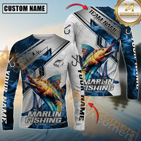 Maxcorners Marlin Fishing Compass Splash 3D Personalized Name, Team Name Long Sleeve Shirt