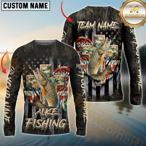 Maxcorners Pike Fishing Golden Hook Graphic Sport Custom Name & Team Name 3D Shirts