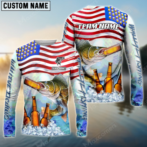 Maxcorners Walleye Fishing Blue Camo Sport Personalized Name, Team Name 3D Long Sleeve Shirt