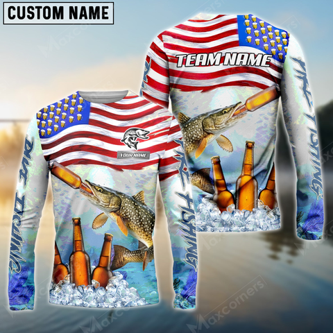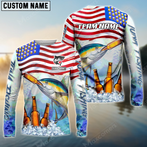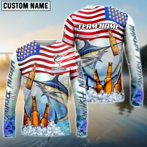 Maxcorners Marlin Fishing American Flag Bear Pattern Sun Protection Personalized Name, Team Name Long Sleeve Shirt