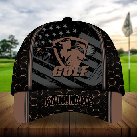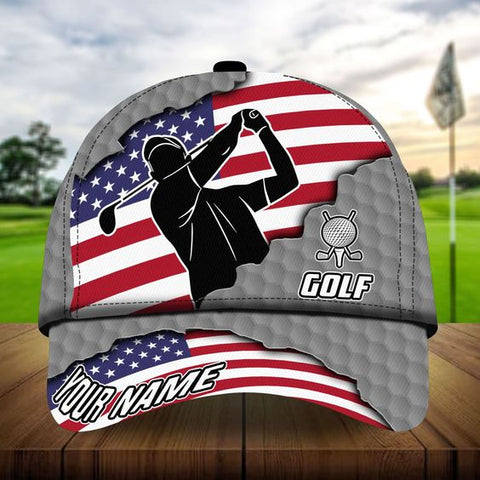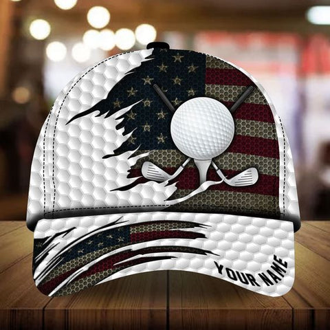 Maxcorners Patriot Heartbeat Swing Golf Cap, Personalized Name Pattern 3D Classic Cap