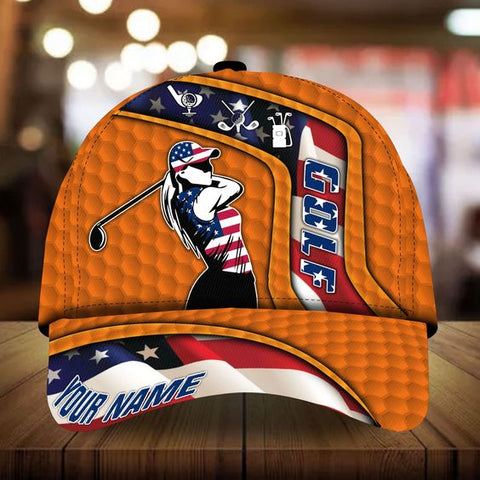 Maxcorners Girls golf hat for women custom name American flag patriot baseball women's golf cap