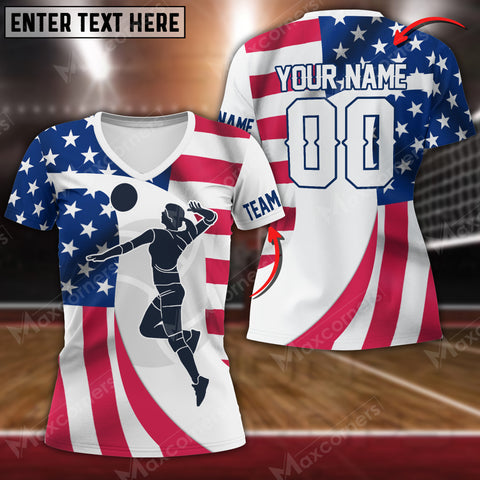 Maxcorners Volleyball USA Flag V-neck T-Shirt For Women